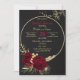 elegant romantiska burgundblommor och guld-löv på en guld-cirkel, utandningsluxa inbjudningskort för möhippan. Närmare uppgifter om glitter simuleras