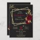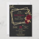 elegant romantiska blommor och guld löv på två guld-rektanglar lyxsvart inbjudningskort för möhippan. glitter-uppgifterna simuleras