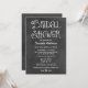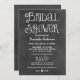 Om du vill ha en avslappnad chic tillfälle med ritad rityta i bröllop och inbjudningskort för möhippa med handskrivna stil-typsnitt och rullor som har ett vitt kritutseende på en bakgrund som har ett rejält svart bords texturerade utseende.