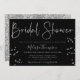 En chic, modern och elegant silver-manuset typografi möhippa-inbjudan med glitter gnistra konetti på redigerbar svart och en glitter silver bakifrån. Ett tema för lyx- och elegant-möhippa.