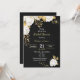 elegant romantiska vita blommor och guld löv lyxsvart inbjudningskort för möhippan. glitter-uppgifterna simuleras