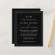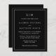 En enkel inbjudan till budgetbröllop med en modern utformning av eleganten med dina två brev monogram överst och dina detaljer omgivna av ett tunt gräns. All text är vit över en svart bakgrund. Färgen typsnitt och bakgrunden kan ändras till valfritt färg genom att klicka på knappen "anpassa". De här bröllopsinbjudningarna i billigt är underbara för ett minimalistiskt par.