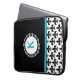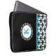 Dessa eleganta 15 flytta sig mycket långsamt monogrammed laptop sleevesärdrag en svart, den vit- och aquablåttfleur de lis designen och monogramen som är initial av ditt primat.