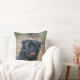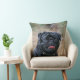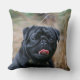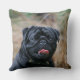 Svart mops som flåsar den stunder tittar kameran kudde
