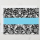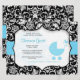 Svart och blå blomster retro mönster baby shower inbjudan mall.
