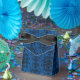 Svart vintage rustik damaskmönster på en gammal blå textil presentlåda, perfekt för gotiska bröllop eller halloween!