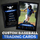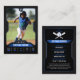 Den här eleganta och moderna basebollkortsmallen är perfekt för att visa din favoritspelares status och resultat. Med sitt svarta och blå färg-schema är det säkert att det är utmärkande för folkmassan. Anpassa den med spelarens namn, bild och statistik för att skapa ett verkligt unikt och minnesvärt kort. Detta ger en underbar gåva till vilken baseboll som helst fläkt eller spelare.
