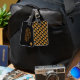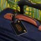 Anpassa enkelt texten på baksidan av detta bagagemärke för sport, som innehåller en upprepning mönster av en brun och vit fotboll som flyger genom luft. Har du ditt bagage på en karusell på flygplatsen med unika märkre? Fler fotbollar är på baksidan.