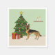 Desteis ursprungliga tecknad illustrerar en berömvärd svart och en färg-tysk Shepherd-hund. Hund står vid ett festligt Julgran med röda prydnadsföremål och gult, en vit pärlträdgård och en gult stjärna på träd. Det finns också två inslagna presenter vid träd och bakom hund finns det en bruna hyllor med två ljus. Golv färg är beige och bakgrundsmuren färg är ljust grönt.