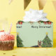 Desteis ursprungliga tecknad illustration av en svart och bruna färg-tysk Shepherd-hund. Hund står vid ett festligt Julgran med röda prydnadsföremål och gult, en vit pärlträdgård och en gult stjärna på träd. Det finns också två inslagna presenter vid träd och det finns ett textområde som nu lyder: "God jul!". Bakgrunden till färg är ljust grönt.