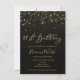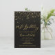 Enkel, modern och elegant 21-års inbjudan med några glittrande prickar högst upp på inbjudan och text i falsk guld folie. Bakgrunden på inbjudan är en bild i falsk guld folie. Ett vackert sätt att inbjuda gäster till din 21-årsfest.