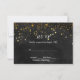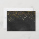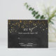 Denna eleganta men moderna svit för bröllopsinbjudan har en bläcksvart akvarellbakgrund med en spridning av falska guldglitterflingor som forsar från toppen och vit text.