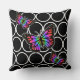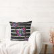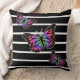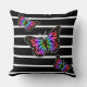 Färgfläckblå rosa grönt svart och vit strimlad modern dekorativ kudde.