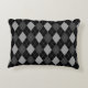 Den här rektangulära accentkudden har svart och grått argyle mönster.