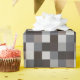 Detta kvadrerar inpackning pappra av särdrag i olikt skuggar av svart och grått i ett pixelated mönster.