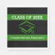 Den enkla men enastående studenten-designen har en studentmössa av gröntens pantbord i mitten. Över och under studentmössan är tjockt grönt linjer med vit trim. Inuti den översta raden står anpassade text som anger klass 20XX där du kan lägga till rätt klassår för studenten. På den undre raden finns anpassade med vitt teckensnitt där du kan lägga till student namn etc. Matchande inbjudningar och tjänster finns också tillgängliga!