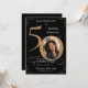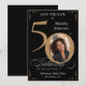 Svart och Guld 50-årsdag Save The Date-kort. Ett elegant utformat speciellt födelsedagsfirande save the date, med ett anpassat foto av födelsedagsbarnet och script kalligrafi med vintage flourish-element. Enkelt nog att passa en mängd olika teman och färger!
