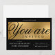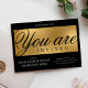 Skapa professionell business inbjudan för ditt evenemang med den här moderna Enterprise Party-inbjudan till svarta och guld. Du kan redigera all text, lägga till logotyp- och händelseinformation för att skapa inbjudningar till snyggten för lanseringen av party, galnatten, insamlingsmiddagen eller andra företagshändelser. Trendigets skrivor för typsnitt "du är inbjuden" och bakgrunden för faux guld lägger till en extra luxe-känsla i dessa företagsinbjudningar.