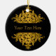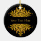 Denna nätt prydnad presenterar en svart bakgrund och en guld- barock design på bekläda och baksidaen. En fläck för ett beställnings- meddelande eller namn smyckar bekläda och baksidaen av prydnaden.