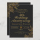 Svart och guld blommande bröllopsjubileum inbjudningar