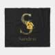 Fin par/familjemonogram med dramatiska flairdrag guld doodle dekorerat brev S med söt solrosbukett, anpassade guld modern text på svart bakgrund