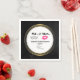 pappra bröllop-servetter med modern stil-bröllop-utformning - glamorös rosa kissy läppar och en maskulinliknande, återtittar mustasch-illustration. Ställ in en svart bakgrund på ritytan med en guld-övertoningscirkel ram i mitten. Texten säger Mr och Mrs. och ni kan anpassa er efter ert datum namn och bröllop.