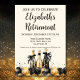 Fira en karriär som lever väl med vår inbjudan till Pension-partiet i Elegant! Den här sofistikerade designen, i rik guld och svarta nyanser, har vita vattenfärgade ballonger och champagne flaskor, som skapar en atmosfär av lyx. Anpassa detaljerna för att göra denna inbjudan unik för era och inbjudan kolleger, vänner och familj att gå med i firande.