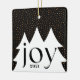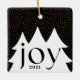 Modern festiv svart, vit och guld konetti-ornament. Vår design har en modern svart och guld-konfekti-bakgrund med en roligt vit Julgran-design. "Joy" visas tillsammans med året. Den omvända sidan har ett ställe för att lägga till ett eget familjefoto tillsammans med ditt namn. Design efter moodthologipapper