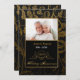 Elegant femtioårs bröllopsinbjudan på svart och guld blom-damask med guldbård för att fira det speciella datumet femtio år tillsammans. Ladda upp ett foto för att ersätta fotot placeholder. Anpassa inbjudans framsida och baksida text med tid, datum, plats och annan information.