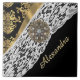 Mönster för svart och guld- vintage för eleganten färgade det damastast filigree och ett nätt kvinnligt gammalt vitsnöre och för rhinestonegemstone för antik diamant en crystal juvel på en anpassade bakgrund. Personlig med din monograminitialer som skapar en unik monogrammed gammalmodig lacy kvinnlig gåva. Skräddarsy lätt bakgrunden från en spänna av beställnings- färger. BEHAGA NOTERAR den guld- färgen är inte metalliskt.