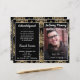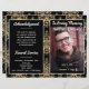 En elegant som kombinerar svart och guld med en dämpningsmönsterbakgrund. Enkel att anpassa med en känsla, ett begravningsprogram och ett favoritfoto. Det är meningen att det ska vikas ihop till hälften.