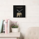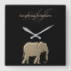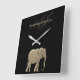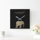 Svart och guld elefantmonogram fyrkantig väggklocka . Modern, stilfull, unik.