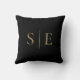 Svart Och Guld Elegant Monogram Minimalistisk Kudde