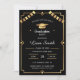 Detta eleganta svarta och gyllene examensfest inbjudningskort är perfekt för en elegant examensfest, med en vacker kalligrafisk teckensnitt.