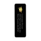 Denna moderna design har en examensmössa och konfetti i guld på en svart bakgrund med vit text.