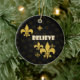 Svart och Guld Fleur de Lis Tro Julgransprydnad Keramik