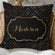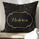 Svart och guld folie prickig konfetti monogram kudde