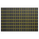 Detta tyg innehåller ett svart- och gult-guld kontrollmönster.