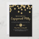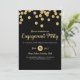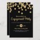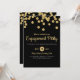 En svart och guld glitter bröllopsfest inbjudan med guldprickar.