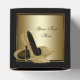 Elegant guld glitter hög klacksko svart och guld födelsedagsfest presentlådor. Du kan enkelt anpassa dessa svarta och gyllene presentlådor genom att lägga till text i det teckensnitt och färg du väljer.