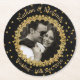 Elegantsvarten och det guld- partyunderlägg som ska personifieras med ditt eget, fotograferar och text, perfekt för att fira bröllop och förlovningar för speciella tillfällen lika. En utsmyckad guldfärgadram omger ditt fotograferar uppsättningen av mot en svart bakgrund med guld färgade flecks. Ser bedöva med svartvitt fotograferar.