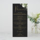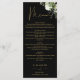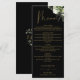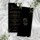 Denna eleganta svarta och gyllene blomster botaniska grönska blad bröllopsmeny kan anpassas med din information i chic typografi med dina monogram initialer på baksidan. Designad av Thisisnotme