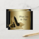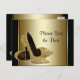 Guld glitter högklackad sko födelsedagsfirande sparade datum vykort med elegant guld högklackad sko på en svart och guld bakgrund. Du kan enkelt anpassa detta svarta och gyllene sparade datum vykort för ditt evenemang genom att lägga till dina uppgifter på framsidan och baksidan i den teckensnittsstil och färg och formulering du väljer. Detta är en tryckt design utan riktig glitter.