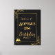 Välkomstskylt för Black & Guld Modern Födelsedagsfest på utdragen arbetsyta som är perfekt för alla åldersgrupper. Den här öga-infångande välkomstarbetsytan är fullt anpassade!