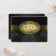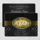 Svart och guld examensinbjudan med ljusa och mörka svarta ränder och ett guld band som löper tvärs över som visar examensåret. Baksidan av kortet är svart med ljusguldbokstäver för ifyllnad av examensfestinbjudningar.