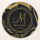 Svart och guld marmor Mönster Bröllopsmonogram Underlägg Papper Rund
