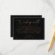 Den här elegant bröllop som vill ha ett bra kort har en fet svart bakgrund med sofistikerat skript och klassisk serif-text i guld stil. Guld är en tryckt design - inte en riktig folie - som ger metalldetaljer med standardtryck. Idealisk för formellt, svart eller modernt bröllop. Denna minimalistiska text är ett tilltalande sätt att begära smekmånadsbidrag eller gåvor från pengarar.
