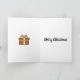Det här mycket moderna julkortet har ett svart och guld-mönster av julklappar i guld på svart bakgrund. Detaljeringen på insidan, (det mer traditionella hälsningsfrasen God Jul), kan anpassas om så önskas eller bara lämnas som den är.