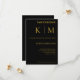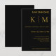Förhöj er bröllopsdag med vår Moderna Svarta och Guld Bröllopsinbjudan. Den har en monogram och modern teckensnitt, den förkroppsligar stil och bekvämlighet. Anpassningsbar: Personifiera med dina detaljer. Gör ditt bröllop minnesvärt från början till slut. Se vår Samling för ett Svart och Guld Tematiskt Bröllop!