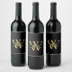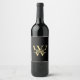 Svart och Guld Monogram | Elegant Initial Namn Vinflaska Etikett